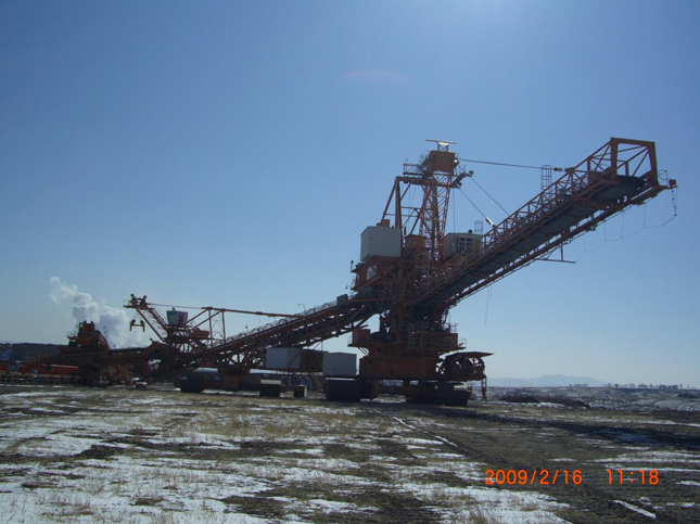 我公司早在上世紀(jì)九十年代就與曼塔克拉夫公司合作制造斗輪挖掘機,現(xiàn)服務(wù)于平莊煤業(yè)元寶山露天煤礦,生產(chǎn)能力3600m3/h,從1992年投產(chǎn)直至今日,建立了良好的用戶口碑。該斗輪挖掘機為大型采礦型,線性尺寸大,可以完成組合采高40m。適用于開采工作面高且強度大的作業(yè)區(qū)域,可以減少工作面帶式輸送機的數(shù)量,便于連續(xù)開采工藝管理。